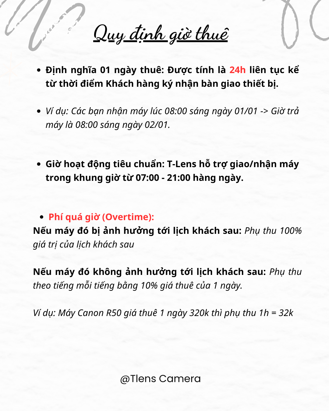 Mọi thắc mắc về các điều khoản / dịch vụ/ ưu đãi và các đóng góp ý kiến về dịch vụ / chế độ CSKH cứ nhắn trực tiếp cho T- Lens để được giải đáp tận tình ạ